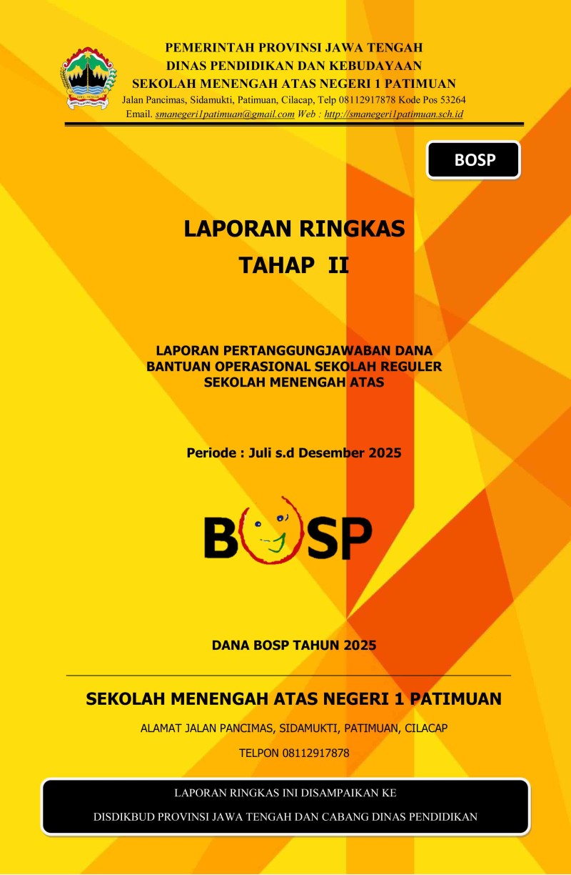 Sebagai bentuk transparansi dan akuntabilitas pengelolaan keuangan sekolah, SMA Negeri 1 Patimuan telah melaksanakan kegiatan Laporan Sumber Dana Bantuan Operasional Sekolah (BOS) Tahun 2025. Laporan ini disusun berdasarkan penggunaan dana BOS yang diterima sekolah dan telah dimanfaatkan sesuai dengan ketentuan yang berlaku untuk mendukung kegiatan pembelajaran, operasional sekolah, serta peningkatan mutu layanan pendidikan. Seluruh proses perencanaan, pelaksanaan